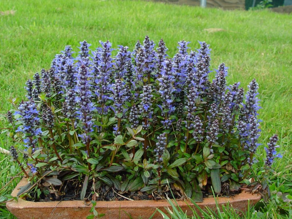 Sous vos rosiers, ‘Chocolate Chips’ est tapis-bordure. Ses feuilles frétillent en hiver. Ses fleurs sont épis bleus. Pousse aussi bien au jardin que dans la plus petite des jardinières ,sur le rebord d’une fenêtre.