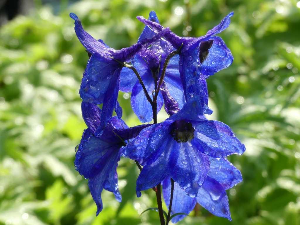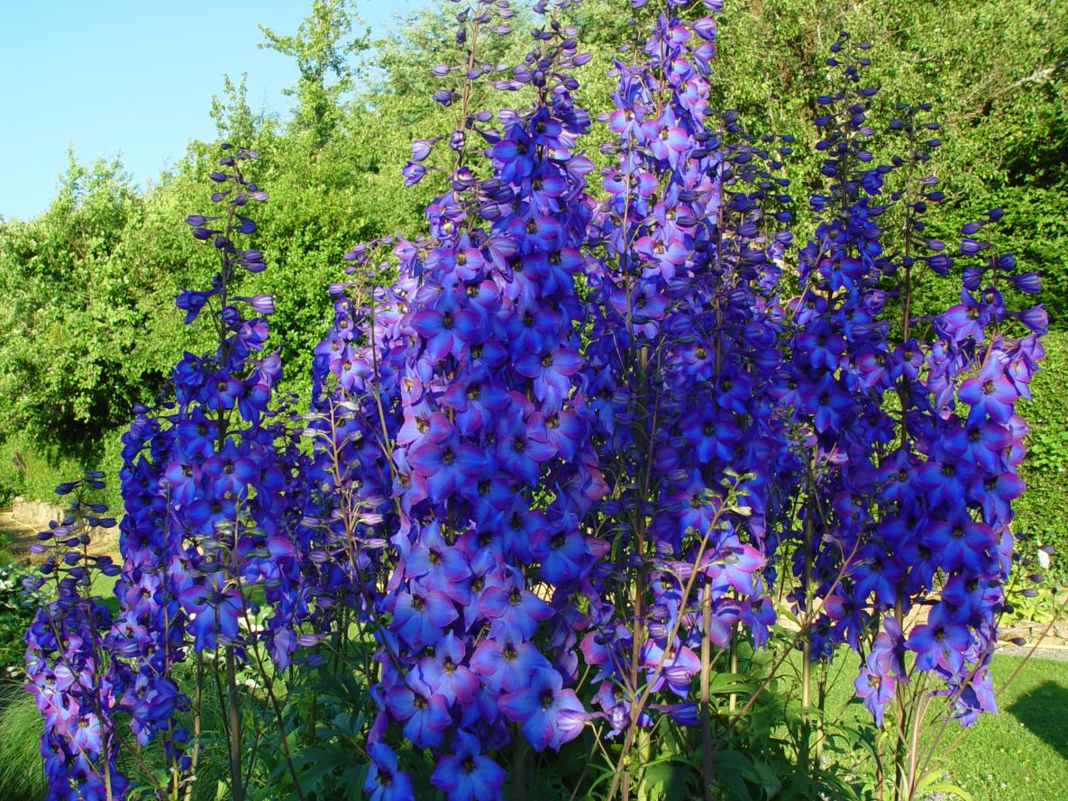 Epis majestueux, bleu gentiane, de juin à octobre (plusieurs floraisons successives).