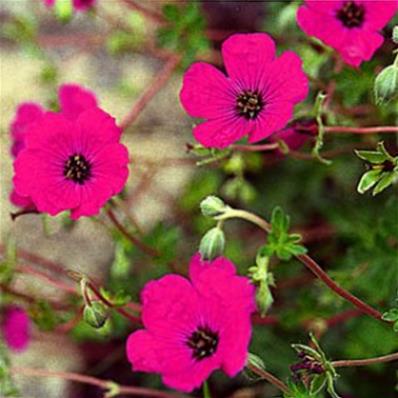 Fleurs rouge magenta vibrant de mai à juillet et deuxième floraison en fin d'été.
