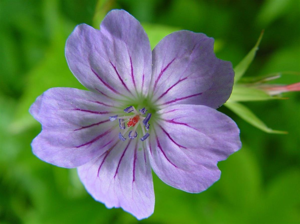 Centaines de petites fleurs lilas veinées de rouge, de mai à septembre.