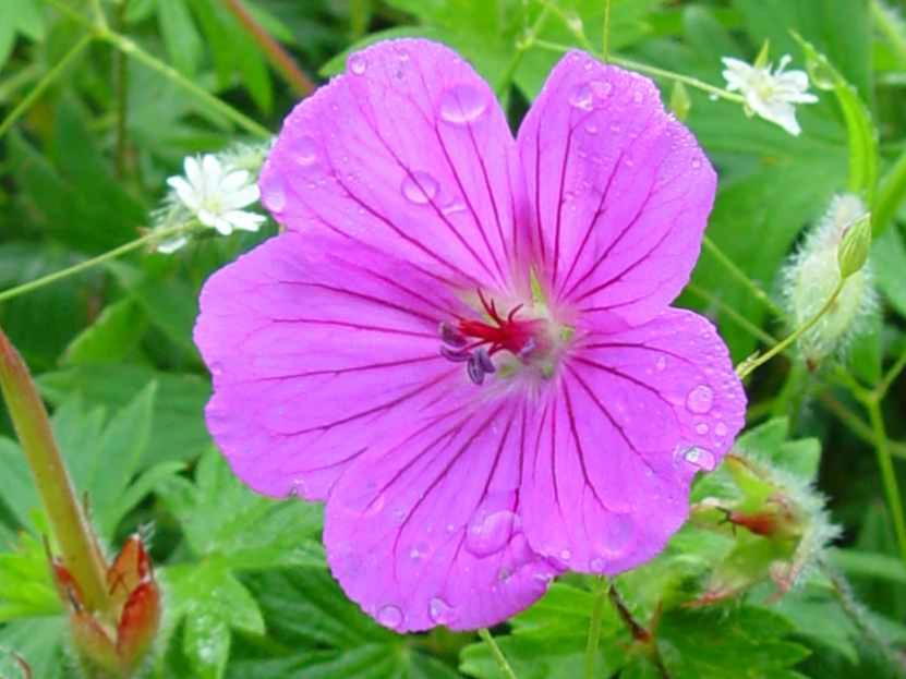 Désolé, la photo est laide Les fleurs sont en réalité d’un ravissant carmin, une couleur quiest très difficile à imprimer.C’est le plus chic des Geranium sanguineum. Son feuillage est raffiné. Les touffes restentdroites, sans s’affaler. La floraison est très longue :