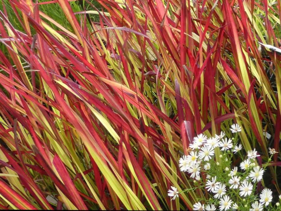 ATTENTION, je n’ai rien à voir avec l‘Imperata vulgaire, fichue peste verte, qui envahit tout. Sage comme une image (sans graine, sans drageon) j’ai le plus rouge des feuillages, avec des nuances vert tendre qui me rendent plus flamboyant. Sans me vanter, je vous ferai craquer en été… Jusqu’aux gelées.