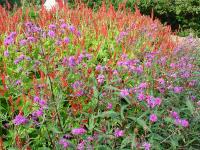 Contraste génial avec les grandes graminées (Miscanthus zébré d’orn°144 ) et les étoiles des Rudbeckia n°70.